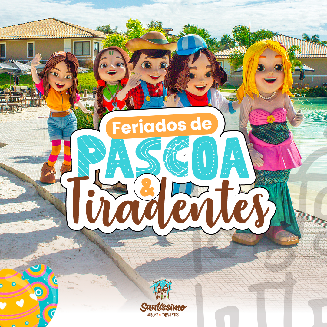 De 02 a 05 de abril, o Santíssimo Resort prepara uma programação que mistura o significado da data com momentos leves e inesquecíveis para toda a família. Durante a Páscoa, o resort se transforma em um verdadeiro cenário temático, onde crianças e adultos entram no clima dessa época tão especial. Entre as atrações estão: